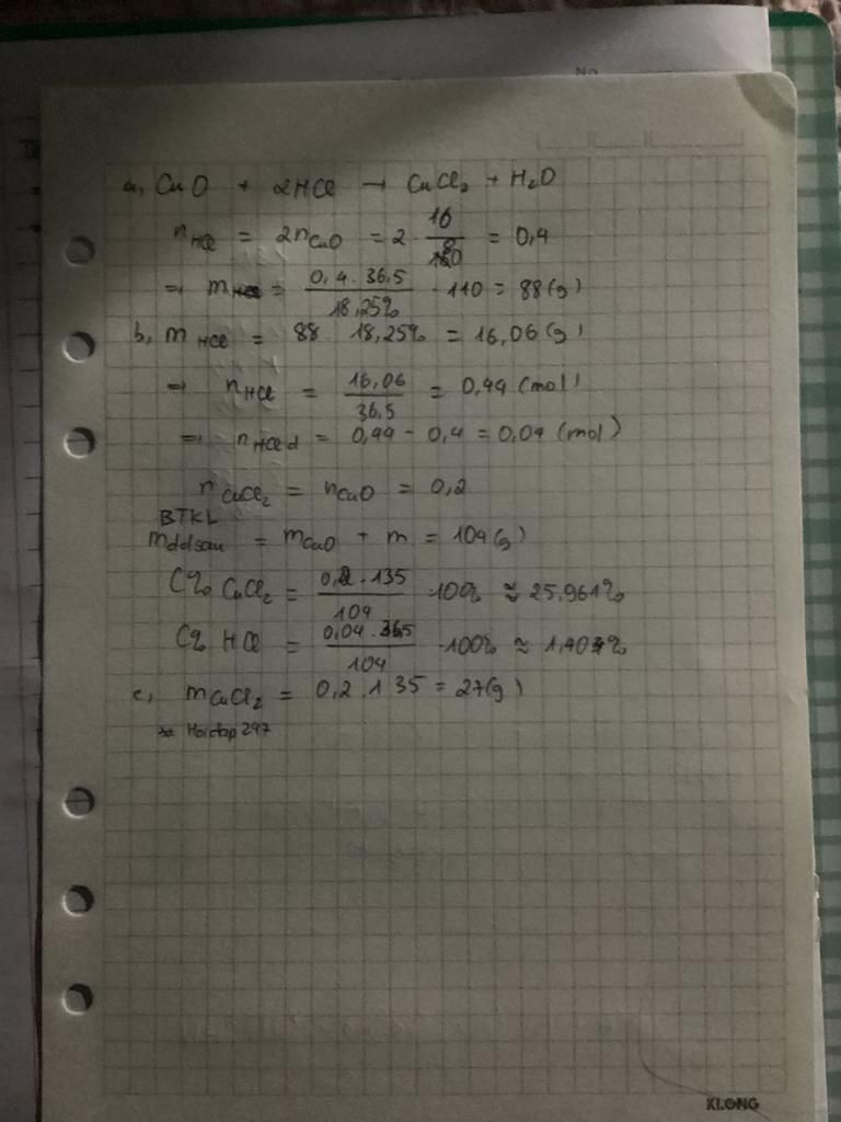 Ap dung dinh luat bao toan khoi luong : `m_(CuCl_2) = 16 + 88 = 104 `