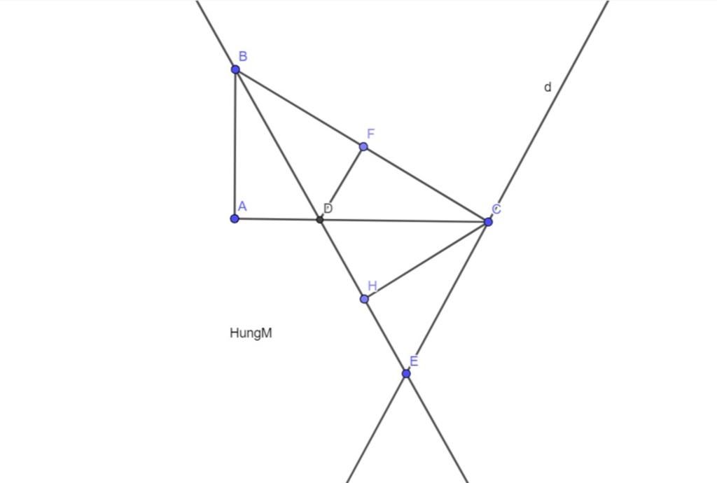 `DF ⊥ BC` và `CE ⊥ BC` (do `E in d`)