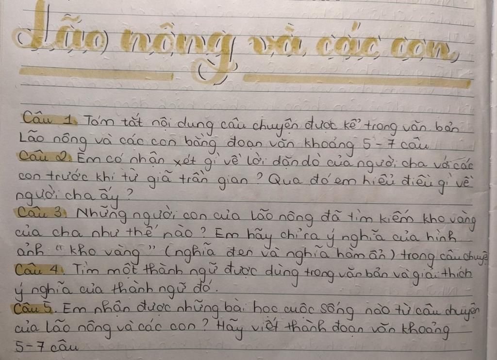 `-` Những người con đã tìm kiếm kho vàng của cha: kiên trì xốc ruộng lên để tìm kiếm.