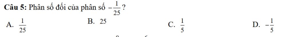 Số đối của `-1/25` là `-(-1/25) = 1/25`