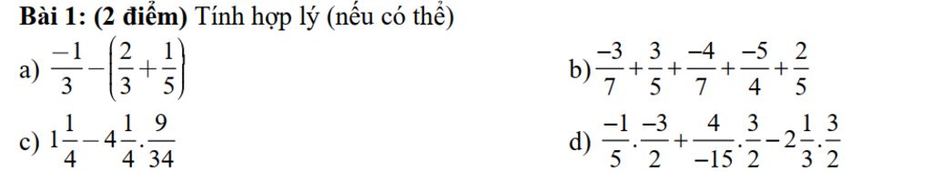 `a)` `(-1)/3 - (2/3+1/5)`