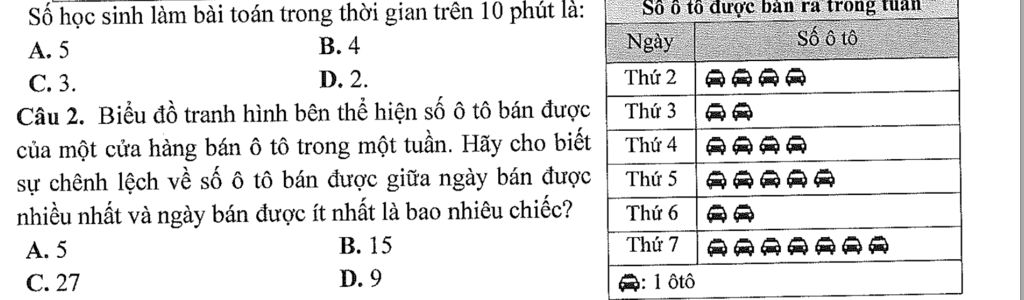Số ô tô bán được trong ngày bán được ít nhất: `2` ô tô