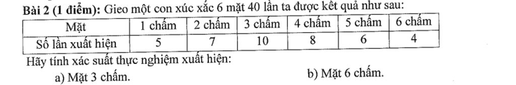 `a)` Xác suất thực nghiệm xuất hiện mặt `3` chấm là `:`