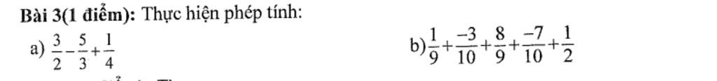 `b. 1/9 + (-3)/10 + 8/9 + (-7)/10 + 1/2`