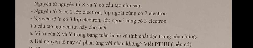 Cấu hình ` e` của ` Y : 1s^2 2s^2 2p^6 3s^2 3p^1 ( Al ) `