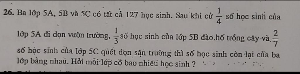 Suy ra 3/4 số học sinh lớp 5A = 2/3 số học sinh lớp 5B = 5/7 số học sinh lớp 5C