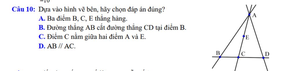 `C.` Sai điểm `C` nằm ngoài điểm `A` và `E`