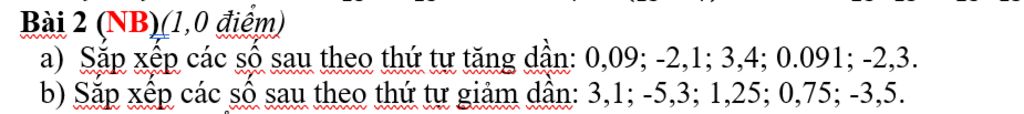 a) Sắp xếp các số sau theo thứ tư tăng dần: