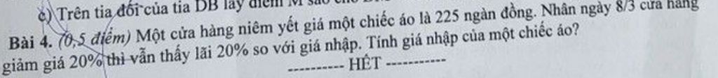 Giá cửa hàng bán trong ngàu `8`/`3` là :