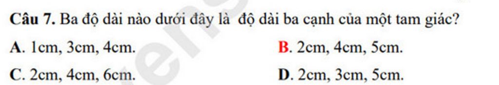 `***` Định lí: Tổng độ dài hai cạnh bất kỳ của tam giác phải lớn hơn độ dài cạnh còn lại.