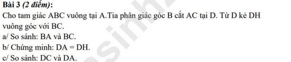 Cho tam giác ABC vuông tại A.Tia phân giác góc B cắt AC tại D. Từ D kẻ DH vuông góc với BC.