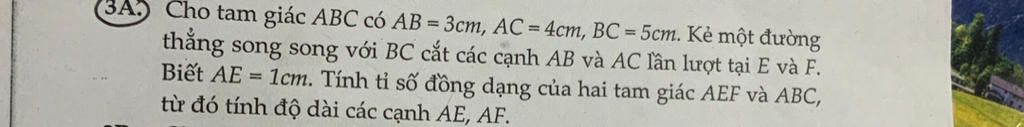 Cho tam giác ABC có AB = 3cm, AC = 4cm, BC = 5cm. Kẻ một đường