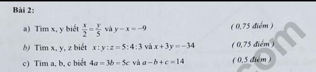 `b)` Vì `x:y:z=5:4:3=>x/5=y/4=z/3`