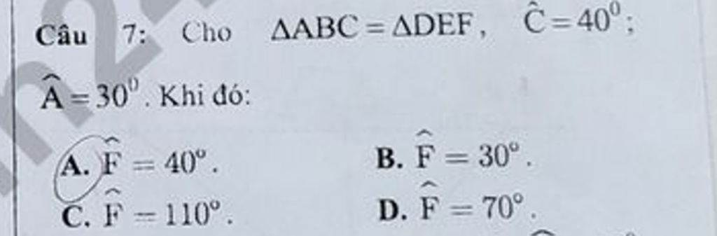 +) `hat{B}=hat{E}=180^o-30^o-40^o=110^o`