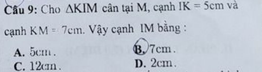`⇒ MK = MI ⇒ MI = 7 cm`