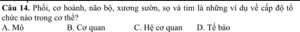 (cơ quan là tập hợp của nhiều mô cùng thực hiện một nhiệm vụ trong cơ thể.