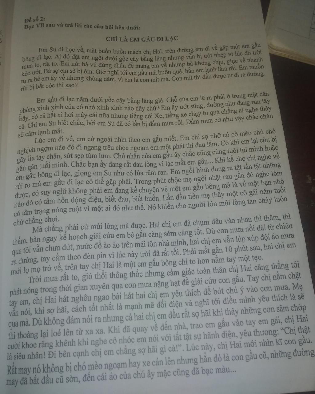 Em Su dường như không để ý điều đó em ôm chân lấy con gấu lấm lem nước mưa để mặt sáng đỡ tưởng như bắt được vàng cũng chưa chắc mừng đến vậy cô nhóc cẩn thận giật con gấu cẩn thận nhờ chị sấy khô và ấm bông hôn hít em mãi khi đi ngủ em sui dành một vị trí tươm tật gần mình nhật cho em gấu 7em Mỹ em gấu hẳn nhiên nó rất sợ hãi và bị lạnh từ chiều đến giờ em hẳn rất buồn khi bị gia chủ cũ may của chị Hai xuất hiện kịp thời làm cứu tinh cho em ấy vì thế em cần phải yêu thương em ấy làm nghệ sĩ riêng cho em ấy sáng mai ngủ dậy em Su nhìn chị Hai cười cười rồi nhìn em gấu hỏi thăm lại nhà ngủ ngon không Gấu ơi rồi em kế với hai răng tối qua em mơ thấy gấu đi lạc vào hai chị em mình cưới đi làm hoặc mua một vùng mênh mông gió mát nắng tươi và hoa đẹp của em lại có những thành tiêu chí quả chín thơm ngon bên đường hai tâm tắc nói em mơ chỉ là thôi rồi Có kịp ăn quả nào không Dạ không em chứ đáp xuống cả hai phá ra cười Hình như em gấu nhỏ cũng vừa nháy mắt tinh nghịch cười đùa theo em Du quả quyết với chị Hai rằng khỏe mạnh em gấu hôm nay đã rất vui vui nhờ so với hôm qua trời đất ơi hôm qua nhìn em ướt nước ướt sao mà thấy thương lúc ấy chỉ ôm hôn cái cho em gấu bớt lạnh nhưng lại dơ mà kìm lòng lại mẹ vẫn dõi theo câu chuyện Hai chị em chợt nghĩ tới chương trình tìm người thân đi lạc vẫn thường phát trên kênh truyền hình Let's Việt bà vú vẫn xem và mỗi buổi sáng có không ít em bé đi là nhiều hoàn cảnh khiến bà vú ngồi khóc sụt sịt vì thương cũng trông giống nước mắt chỉ mong trên những bước đường lạ người cũng như em gấu sẽ tìm được niềm ấm áp