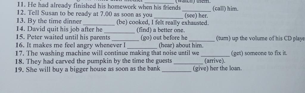 11. He had already finished his homework when his friends