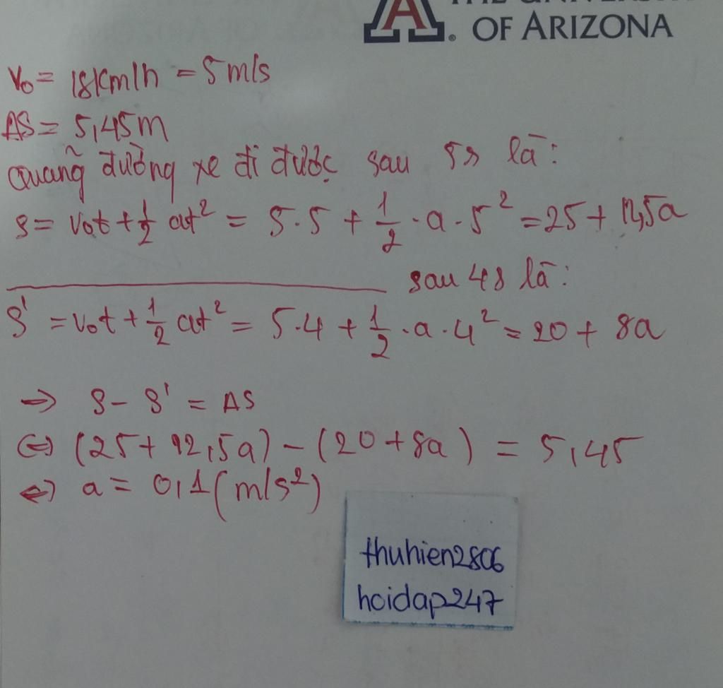 Vậy gia tốc của xe là `0,1\text{m/}s^2`