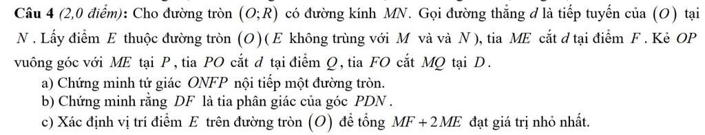 => ONFP nội tiếp được vì có 2 góc đối cùng bằng 90