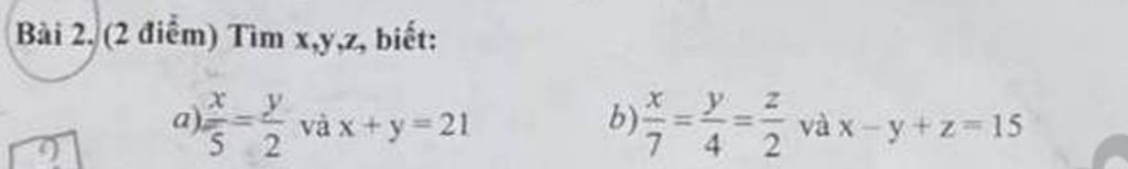 `x/5=y/2=(x+y)/(5+2)=21/7=3 `