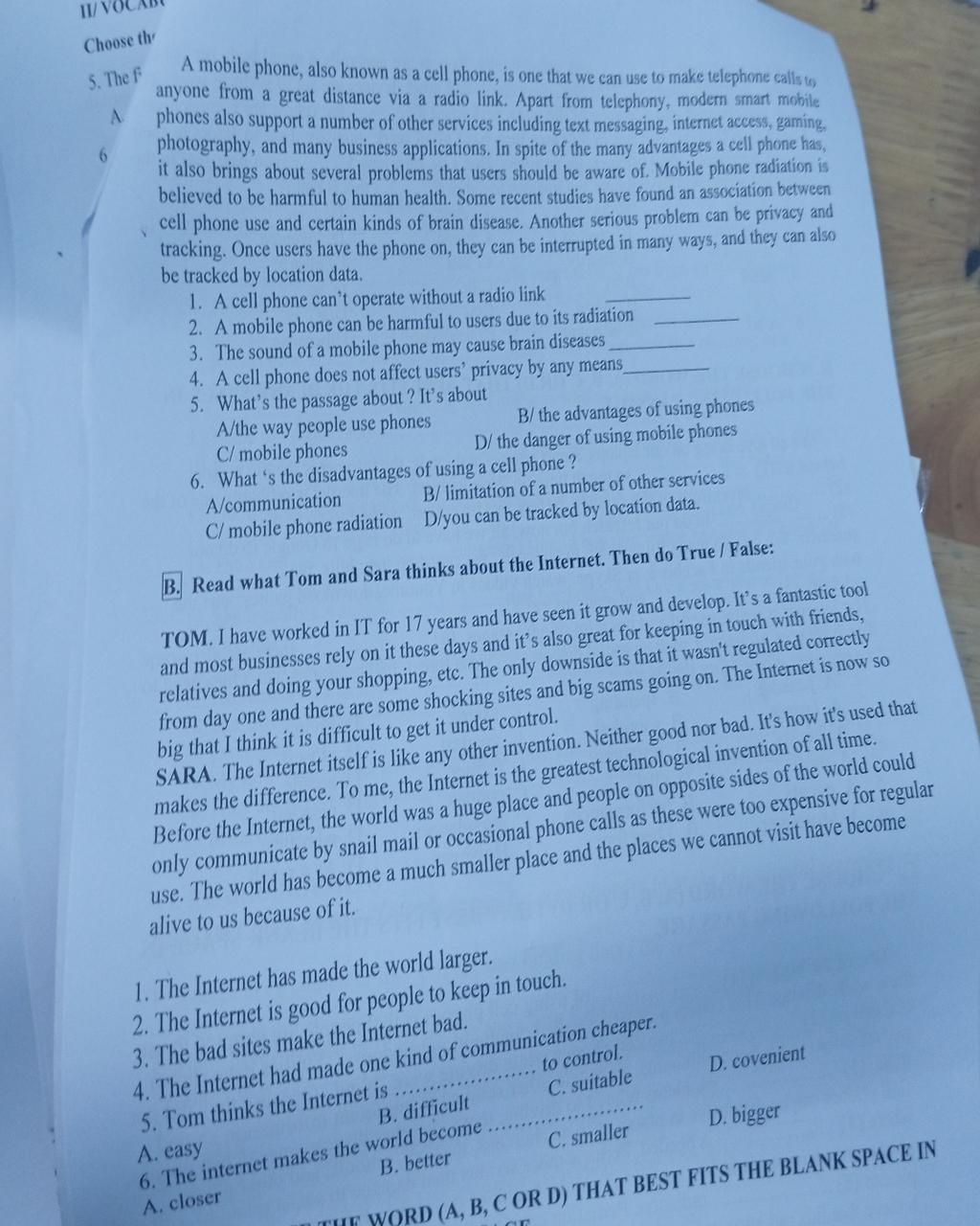 anyone from a great distance via a radio link. Apart from telephony, modern smart mobile