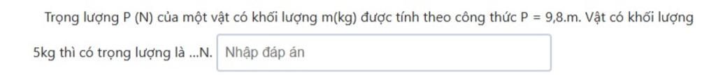 Vậy vật có khối lượng `5kg` thì có trọng lượng là `49N`.
