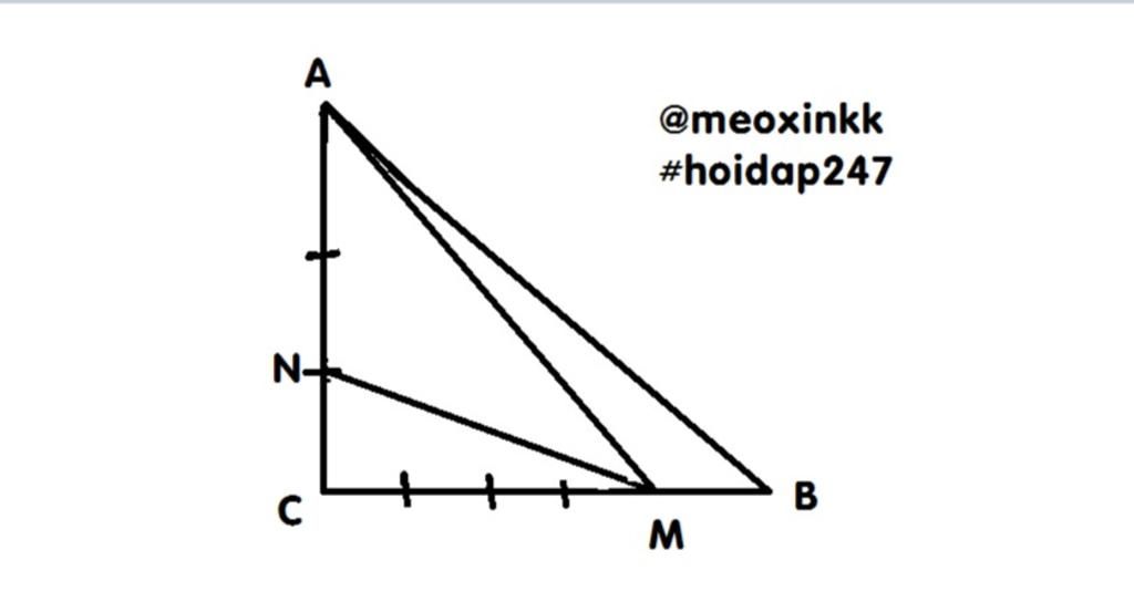 (Vì NC = `1/3` AC nên AN = `2/3` AC và 2 tam giác có chung chiều cao)