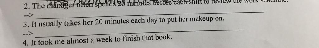 2. It often takes the manager 20 minutes before each shift to review the work ...