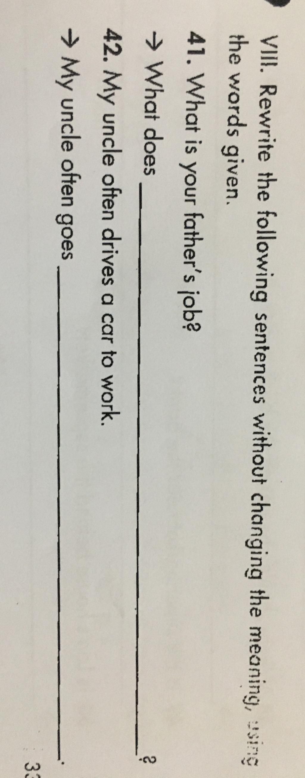 42. -> My uncle often goes to work by car. ( Hỏi về đi bằng phương tiện gì )