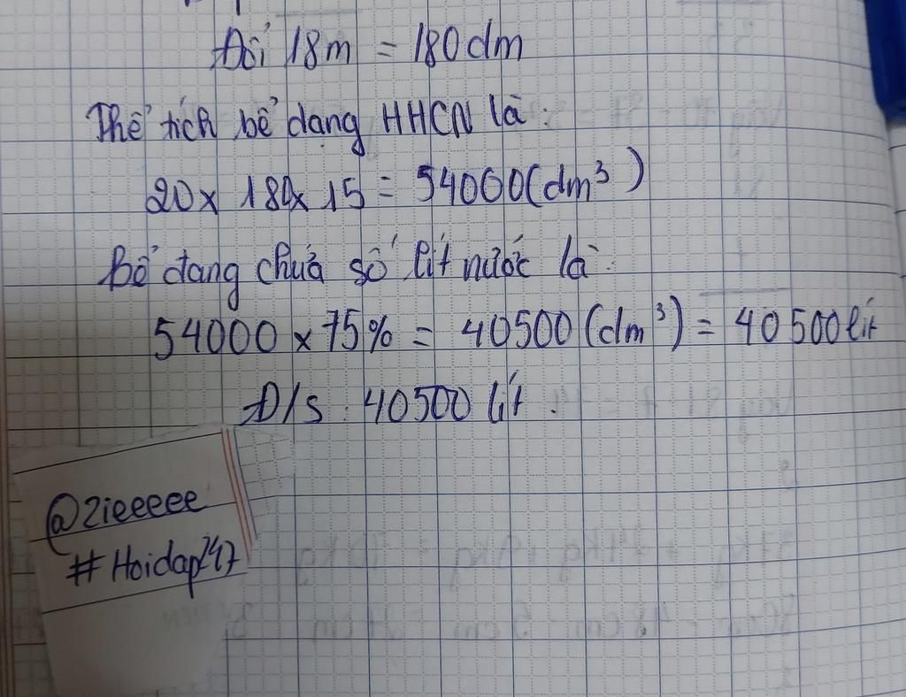 `-` Vì `1dm^3 = 1l` nên `:` `54000dm^3 = 54000l`