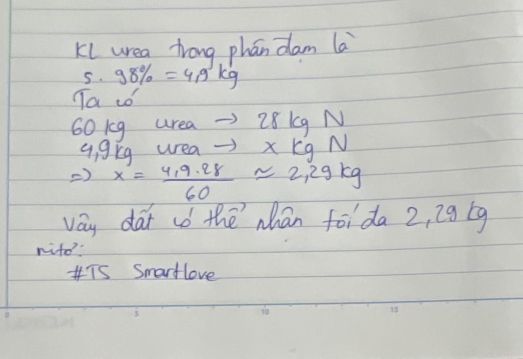 `m_(urea)=5*98/100=4,9(kg)`