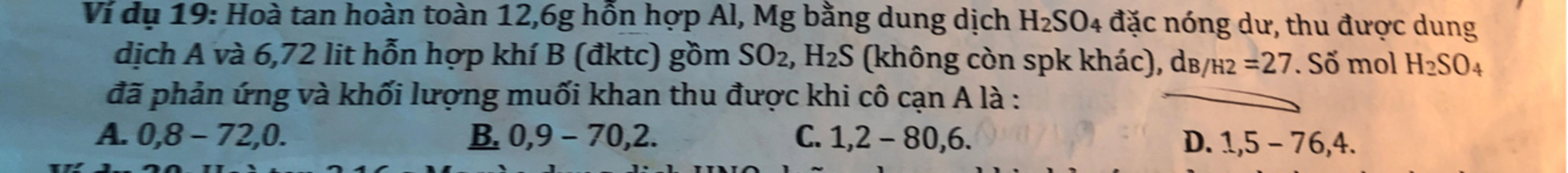 `=>`$m_{muối}=m_{kim \,\, loại}+m_{SO_4}=12.6+96 \times 0.6=70.2(gam)$