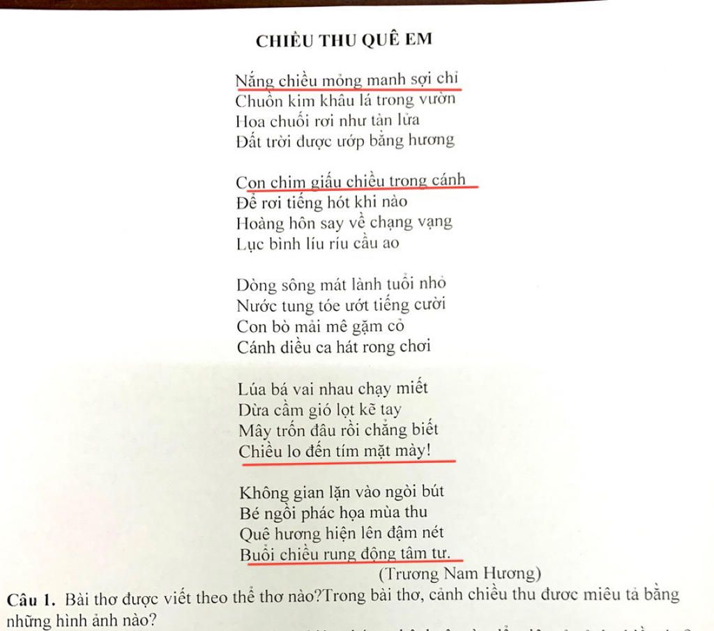 Câu `1.` Bài thơ được viết theo thể thơ nào?Trong bài thơ, cảnh chiều thu được miêu tả bằng những hình ảnh nào?