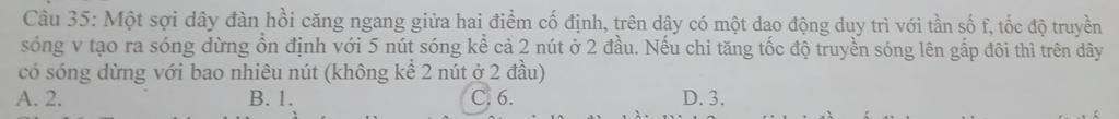 Câu 35: Một sợi dây đàn hồi căng ngang giữa hai điểm cố định, trên dây có một dao động duy trì với tần số f, tốc độ truyền