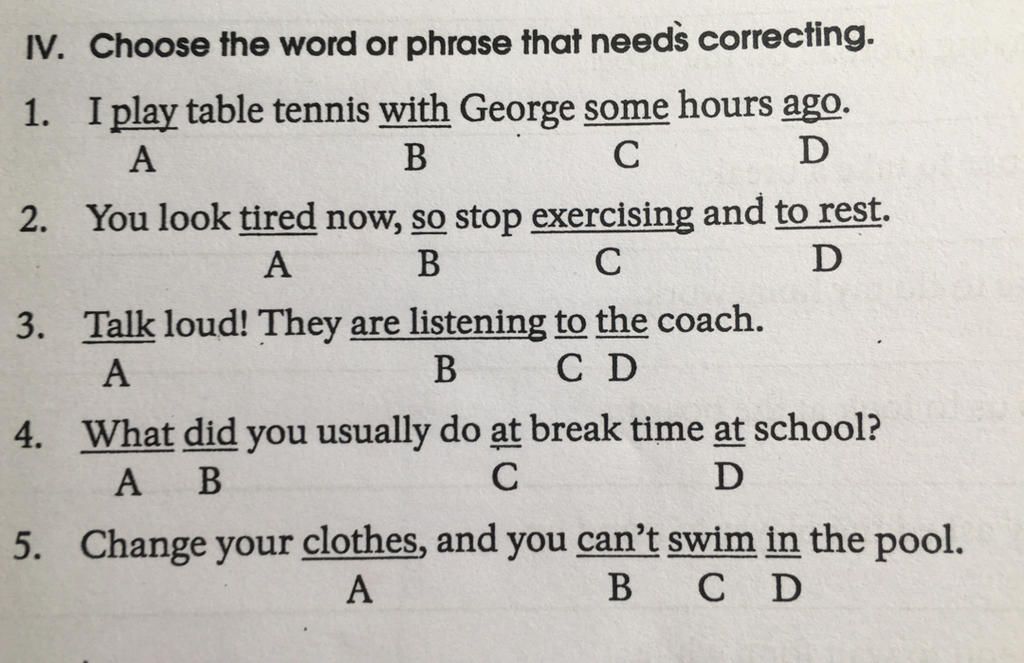 lưu ý chút là bạn có thể bị nhầm và chia D. To rest thành "resting" theo "exercising" nhưng nhớ rằng động từ chính ở đây là stop, và từ and nối hai động từ chính với nhau nên D phải chia theo stop cũng như theo cấu trúc trên