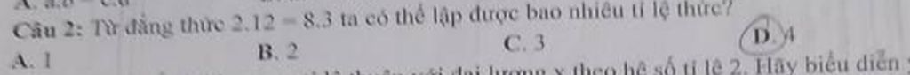 `@` Từ đẳng thức `2 . 12 = 8 . 3`, ta suy ra các tỉ lệ thức sau `:`