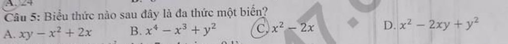 `=>x^2-2x` là đa thức một biến