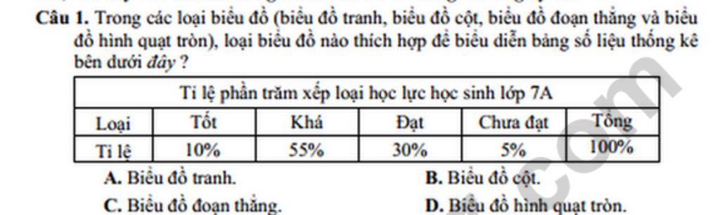 Câu 1. Trong các loại biểu đồ (biểu đồ tranh, biểu đồ cột, biểu đồ đoạn thẳng và biểu