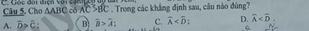 Ta áp dụng định lí : Góc đối diện với cạnh lớn hơn thì góc đó lớn hơn.