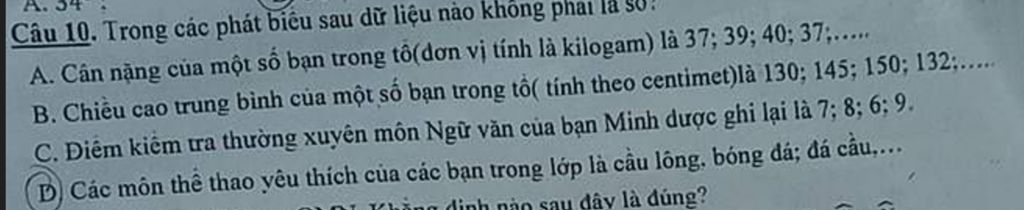 A, là dữ liệu vì nó chỉ số cân nặng của một số bạn
