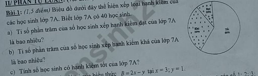 b) Tỉ số phần trăm của số học sinh xếp hạnh kiểm khá của lớp 7A là 30%