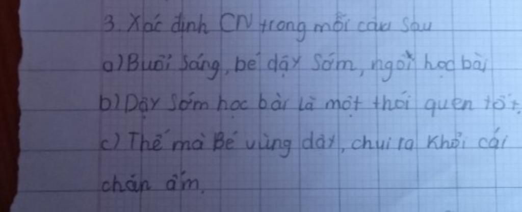 `b)` Dậy sớm học bài `/` là một thói quen tốt.