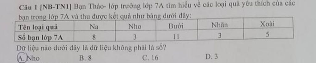 `B.` Loại vì đây là dữ liệu số.