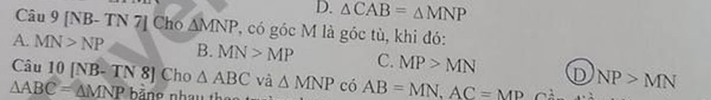 `=>` Cạnh đối diện với `hatM` là `NP`