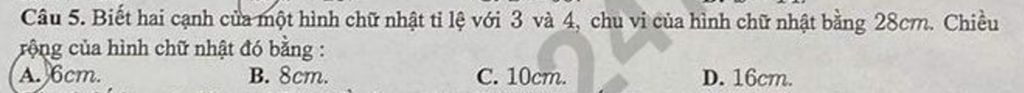 Vậy chiều rộng là `6cm` và chiều dài là `8cm`