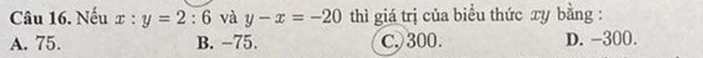 Thay `x=-10` và `y=-30` vào biểu thức `xy` ta có