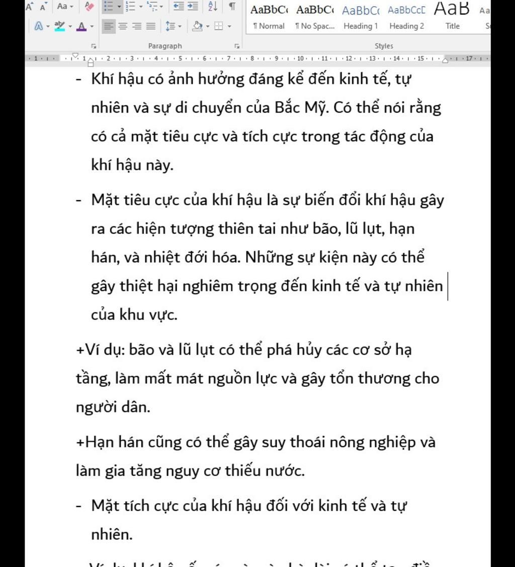 `-` Khí hậu ấm áp có thể tạo điều kiện thuận lợi cho sự phát triển của nhiều loại cây trồng, từ đó thúc đẩy nền nông nghiệp.