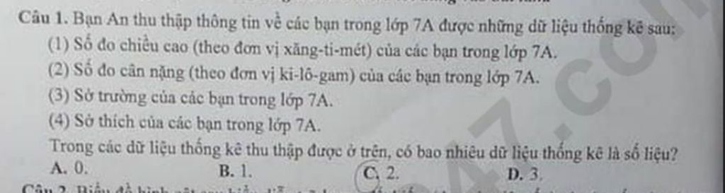 `@` Có `2` dữ liệu thống kế bằng số liệu là số đo chiều cao (theo đơn vị xăng-ti-mét) của các bạn trong lớp 7A,Số đo cân nặng (theo đơn vị ki-lô-gam) của các bạn trong lớp 7A.