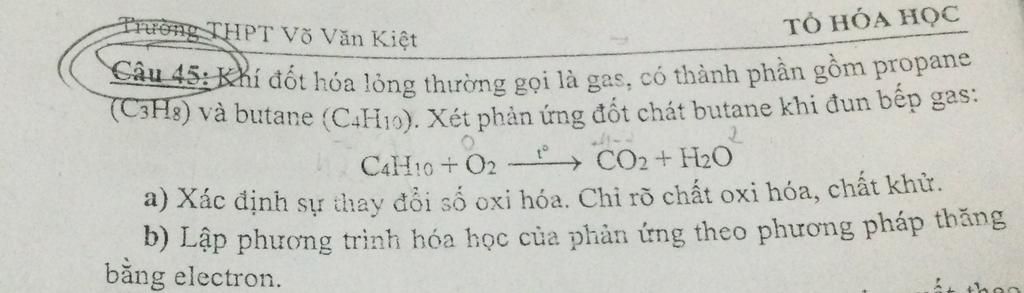 nhân chép sự thay đổi số oxh của các chất ta có 2C4H10 + 13O2 -> 8CO2 + H2O
